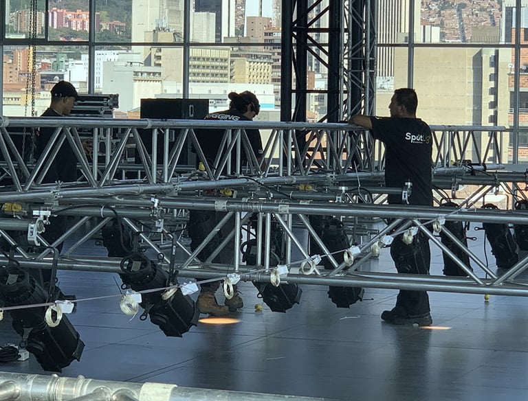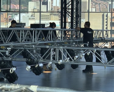 Contamos con equipos profesionales en iluminación, sonido, pantallas LED, tarimas, estructuras, efectos especiales y soluciones de streaming corporativo, respaldados por personal técnico altamente calificado.